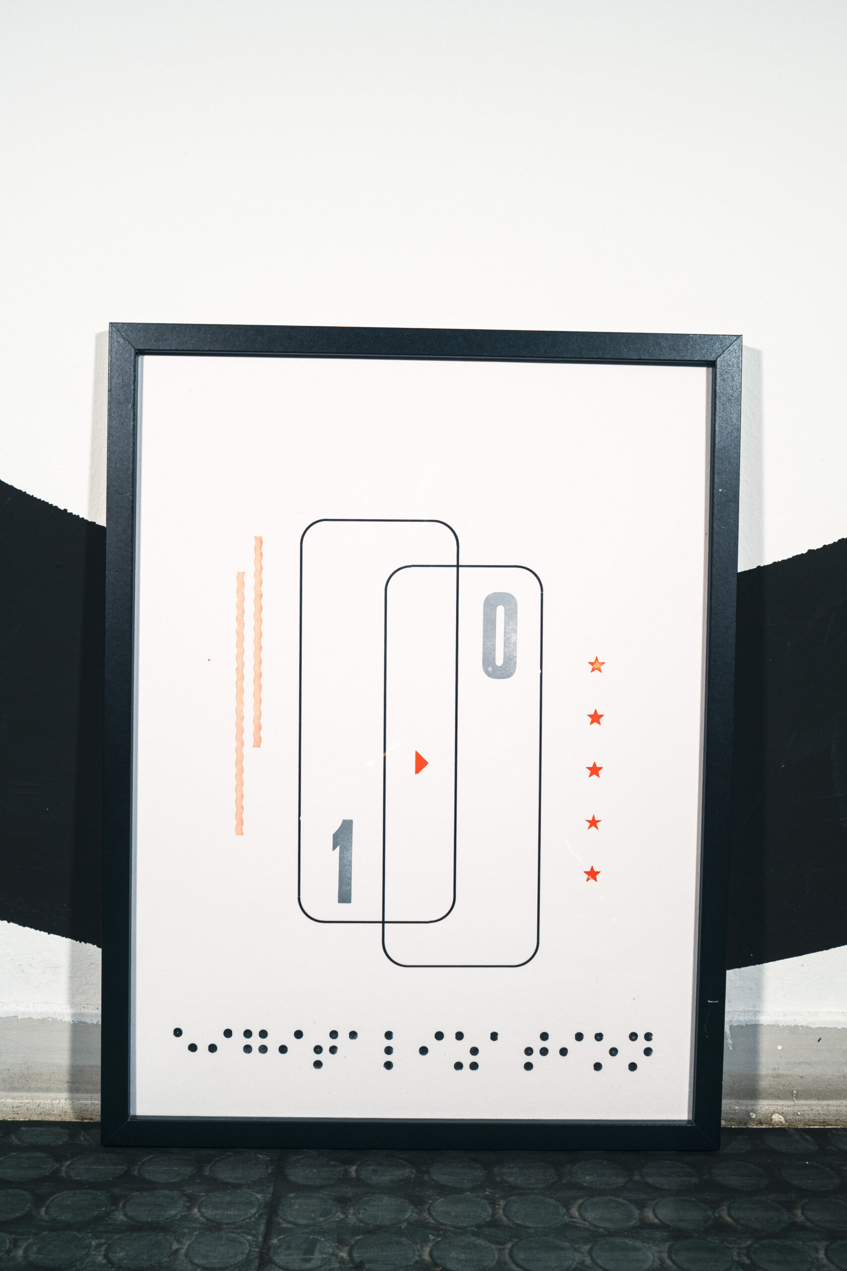 Null oder Eins, wahr oder falsch – ist unsere Datenübertragung wirklich sicher? Das Poster verbindet digitale Codes mit Brailleschrift und macht sichtbar, was oft unsichtbar bleibt: die Fragilität digitaler Sicherheit. -