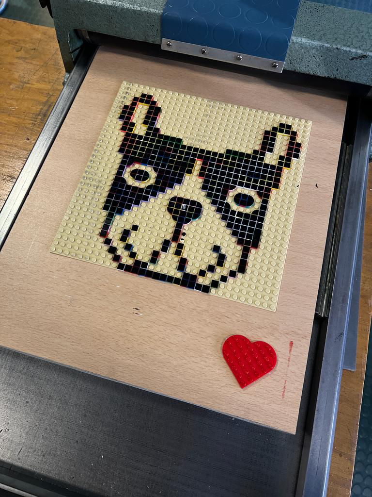 Danach wirst du selbst kreativ: Mit großen Lettern und sogar Lego-Bausteinen gestaltest du dein eigenes Druckmotiv. Die Teile setzen wir gemeinsam so, dass sie bereit fürs Drucken sind.